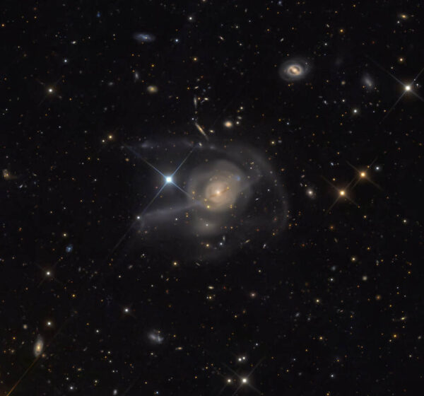 Active galaxy NGC 1275 is the central, dominant member of the large and relatively nearby Perseus Cluster of Galaxies. Wild-looking at visible wavelengths, the active galaxy is also a prodigious source of x-rays and radio emission. NGC 1275 accretes matter as entire galaxies fall into it, ultimately feeding a supermassive black hole at the galaxy’s core. Narrowband image data used in this sharp telescopic image highlights the resulting galactic debris and filaments of glowing gas, some up to 20,000 light-years long. The filaments persist in NGC 1275, even though the turmoil of galactic collisions should destroy them. What keeps the filaments together? Observations indicate that the structures, pushed out from the galaxy’s center by the black hole’s activity, are held together by magnetic fields. Also known as Perseus A, NGC 1275 itself spans over 100,000 light years and lies about 230 million light years away.