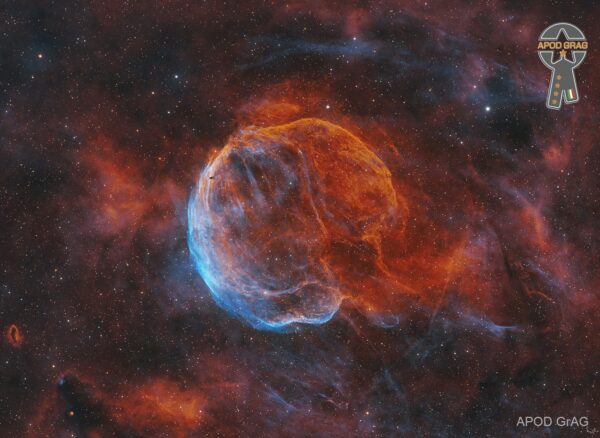 Abell 85, also known as CTB1, is a faint supernova remnant in Cassiopeia at a distance of approximately 9,780 light-years. Its diameter is about half a degree, almost the size of the full moon. It is also called the ‘Burst Balloon Nebula’ because its southern part has burst at 5 o’clock. Very faint, this nebula has a diameter of about 98 light-years and is a source of optical, radio and X-ray emissions.