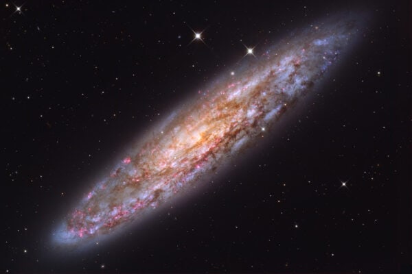 Shiny NGC 253 is one of the brightest spiral galaxies visible, and also one of the dustiest. Some call it the Silver Coin Galaxy for its appearance in small telescopes, or just the Sculptor Galaxy for its location within the boundaries of the southern constellation Sculptor. Discovered in 1783 by mathematician and astronomer Caroline Herschel, the dusty island universe lies a mere 10 million light-years away. About 70 thousand light-years across, NGC 253 is the largest member of the Sculptor Group of Galaxies, the nearest to our own Local Group of Galaxies. In addition to its spiral dust lanes, tendrils of dust seem to be rising from its galactic disklaced with young star clusters and star forming regions in this colorful galaxy portrait. The high dust content accompanies frantic star formation, earning NGC 253 the designation of a starburst galaxy. NGC 253 is also known to be a strong source of high-energy x-rays and gamma rays, likely due to black holes near the galaxy’s center.