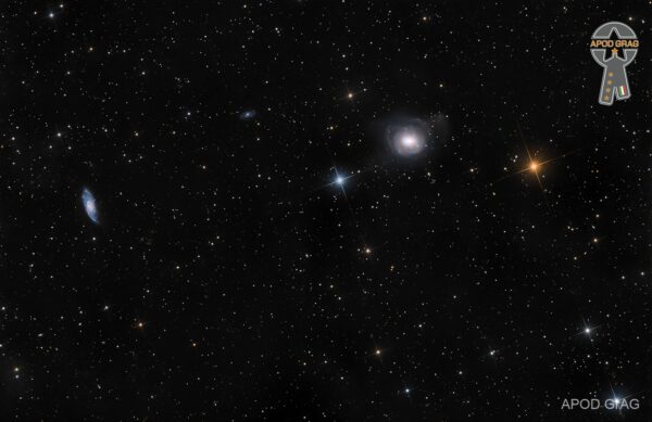 NGC 2655 is the brightest member of the NGC 2655 group, which also contains the Sc galaxy NGC 2715, NGC 2591, and NGC 2748. One of the gas structures of NGC 2655 is trailing off toward the small galaxy UGC 4714.